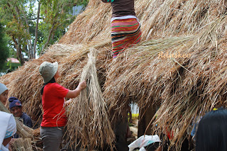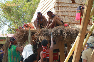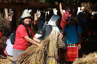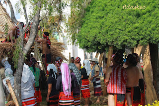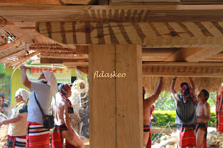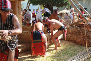 It takes a village to build a house. Representatives from the different barangays of Tadian and other line agencies came together for the “sukgot” or the roofing of the binangi. Photo by Felomina Daskeo