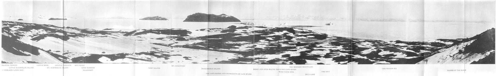 | Plate I. | A panoramic view over Cape Evans, and McMurdo Sound from the Ramp. | 184 |