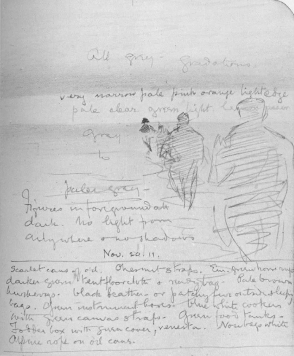 I determined that the first object of the illustrations should be descriptive of the text: Wright and Debenham have photographs, sledging and otherwise, which do this admirably. Mrs. Wilson has allowed me to have any of her husband's sketches and drawings reproduced that I wished, and there are many hundreds from which to make a selection. In addition to the six water-colours, which I have chosen for their beauty, I have taken a number of sketches because they illustrate typical incidents in our lives. They are just unfinished sketches, no more: and had Bill been alive he would have finished them before he allowed them to be published. Then I have had reproduced nearly all the sketches and panoramas drawn by him on the Polar Journey and found with him where he died. The half-tone process does not do them justice: I wish I could have had them reproduced in photogravure, but the cost is prohibitive.