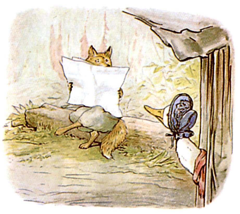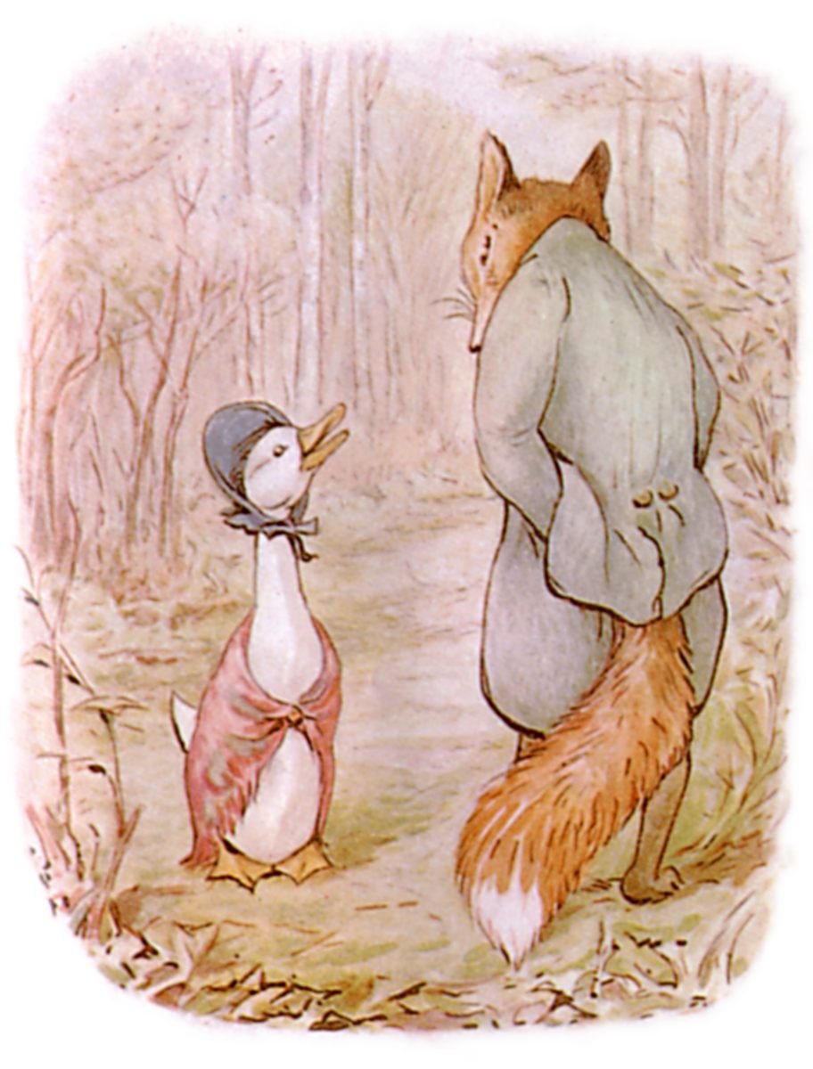 He was rather abrupt. Jemima Puddle-duck had never heard him speak like that.