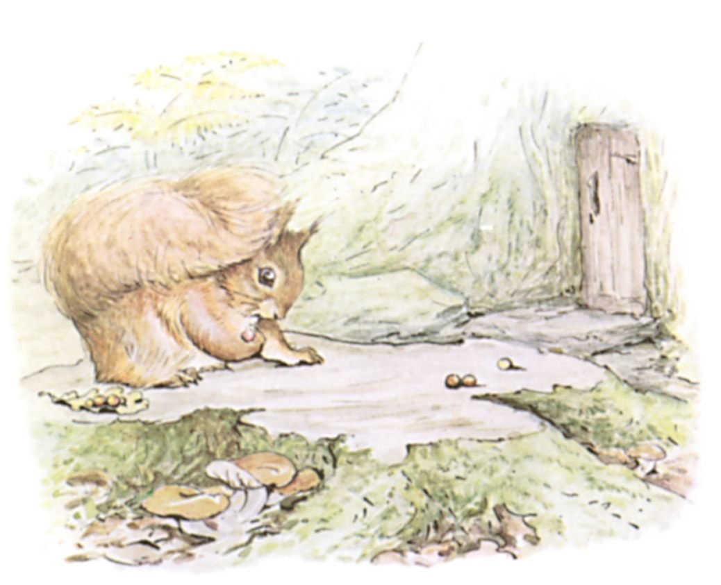 This is a Tale about a tail—a tail that belonged to a little red squirrel, and his name was Nutkin.