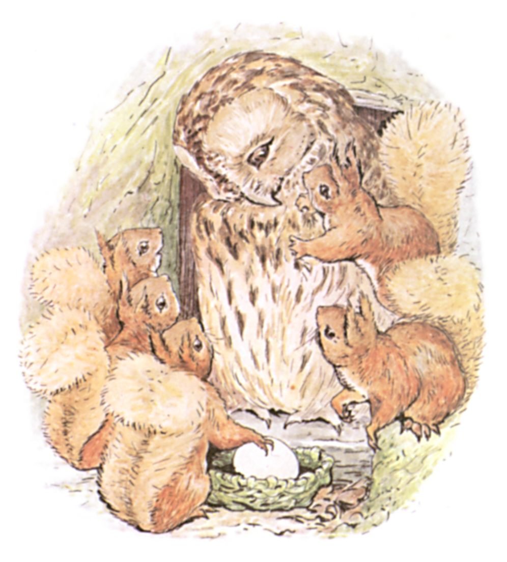 And to this day, if you meet Nutkin up a tree and ask him a riddle, he will throw sticks at you, and stamp his feet and scold, and shout—