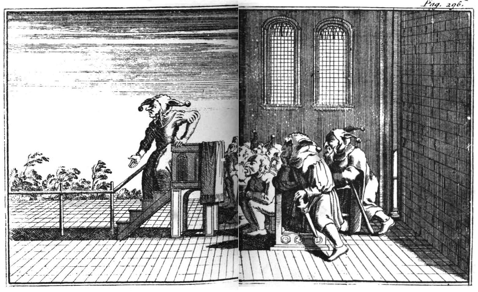 But why need I have been so impertinent as to have told you this, as if my very looks did not sufficiently betray what I am; or supposing any be so credulous as to take me for some sage matron or goddess of wisdom, as if a single glance from me would not immediately correct their mistake, while my visage, the exact reflex of my soul, would supply and supersede the trouble of any other confessions: for I appear always in my natural colours, and an unartificial dress, and never let my face pretend one thing, and my heart conceal another; nay, and in all things I am so true to my principles, that I cannot be so much as counterfeited, even by those who challenge the name of wits, yet indeed are no better than jackanapes tricked up in gawdy clothes, and asses strutting in lions' skins; and how cunningly soever they carry it, their long ears appear, and betray what they are. These in troth are very rude and disingenuous, for while they apparently belong to my party, yet among the vulgar they are so ashamed of my relation, as to cast it in others' dish for a shame and reproach: wherefore since they are so eager to be accounted wise, when in truth they are extremely silly, what, if to give them their due, I dub them with the title of wise fools: and herein they copy after the example of some modern orators, who swell to that proportion of conceitedness, as to vaunt themselves for so many giants of eloquence, if with a double-tongued fluency they can plead indifferently for either side, and deem it a very doughty exploit if they can but interlard a Latin sentence with some Greek word, which for seeming garnish they crowd in at a venture; and rather than be at a stand for some cramp words, they will furnish up a long scroll of old obsolete terms out of some musty author, and foist them in, to amuse the reader with, that those who understand them may be tickled with the happiness of being acquainted with them: and those who understand them not, the less they know the more they may admire; whereas it has been always a custom to those of our side to contemn and undervalue whatever is strange and unusual, while those that are better conceited of themselves will nod and smile, and prick up their ears, that they may be thought easily to apprehend that, of which perhaps they do not understand one word. And so much for this; pardon the digression, now I return.