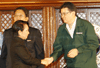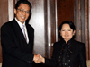 President Gloria Macapagal-Arroyo welcomes Ho Kwon Ping, chief executive officer of Singapore’s Banyan Tree Group, during a courtesy call on her Wednesday (Nov. 14) at Malacanang's Music Room. The Banyan Tree Group executive informed the President that his company is pushing through with its plan to develop two resorts in Dinalan Island, Palawan at a cost of US$70 million. (Rico Borja/OPS-NIB Photo) | ||