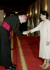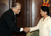 A beaming President Gloria Macapagal-Arroyo congratulates Apostolic Nuncio to the Philippines His Excellency Edward Joseph Adams after receiving his credentials Friday (Nov. 16) at Malacanang's Rizal Hall. (Marcelino Pascua-OPS/NIB Photo) | ||