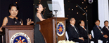 PGMA ADDRESSES 33RD KBP CONFAB -- President Gloria Macapagal-Arroyo gestures to emphasize a point as she addresses the 33rd Top Level Management Conference of the Kapisanan ng mga Brodkaster sa Pilipinas (KBP) Wednesday night (Nov. 14) at the Grand Ballroom of the Oxford Hotel at Clark Freeport Zone in Pampanga. (Exequiel Supera-OPS/NIB Photo) | ||